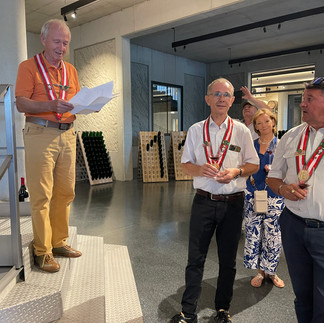 Die Domaine Wolf und Muster.Gamlitz vereinen ihre vinologischen Aktivitäten unter dem gemeinsamen Dach des neuen Gemeinschaftsunternehmens "1196" in Steinbach 35 in der Weinbaugemeinde Gamlitz am Sernauberg. Herzstück der Kooperation ist der absolut am neuesten Stand der Technik befindliche Weinkeller. Und eben dort hatten Mitglieder der Österreichischen Weinbruderschaft und Gäste unter Komtur Johann Mehrl und dank Organisator Komtur-Kellermeister Johann Trattner sowie Weinbruder Helmut Ledinegg nunmehr bereits am 9. August 2024 eine erste interessante Gelegenheit, das Projekt im Rahmen einer Verkostung mit Mastermind Reinhard Muster näher kennen zu lernen.